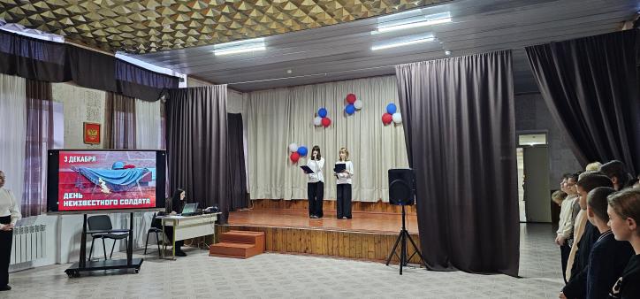 Для старшей школы была проведена линейка ко Дню Неизвестного Солдата — дню памяти о всех, кто отдал жизнь за Родину, оставаясь неизвестным по имени, но навсегда героем в сердцах людей. Ребята почтили память защитников и вспомнили значимость этой даты для всей страны.