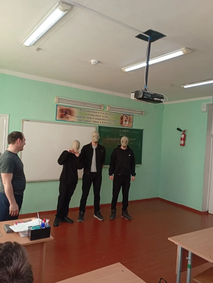 Практическая часть включала тренировку по использованию средств индивидуальной защиты, а также отработку эвакуации учащихся из здания школы в соответствии с установленным алгоритмом действий.